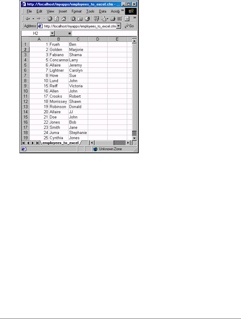 Save the file as employees_to_excel.cfm in the myapps directory under your web_root and view