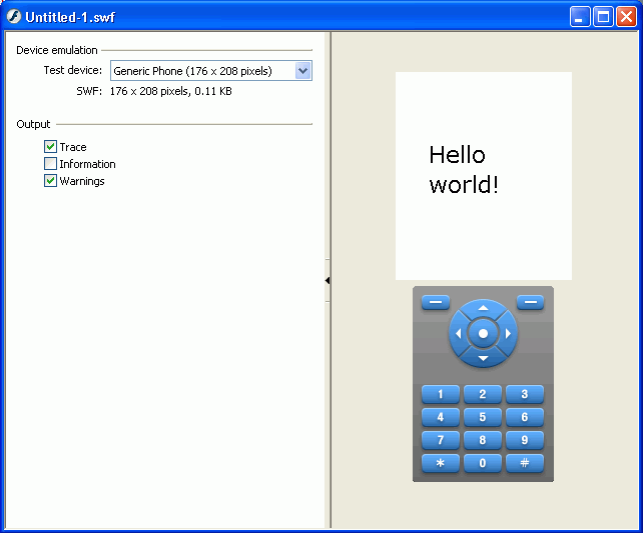 8. Select Control > Test Movie to view your application in the Flash Lite