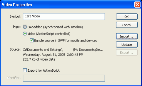 4. Type a name for the video symbol in the Symbol text box (cafe Video,