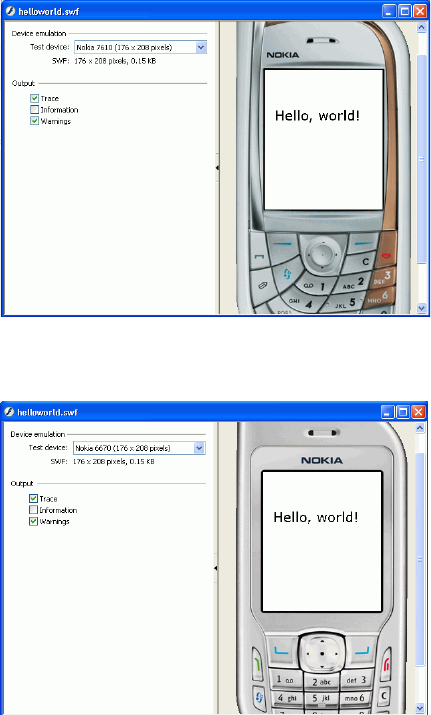 7. Select Control > Test Movie to view your application in the Flash Lite
