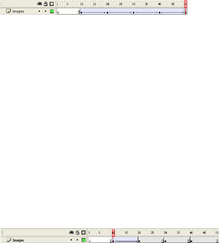 5. On the Images layer, insert keyframes on Frames 20, 30, 40, and 50, as