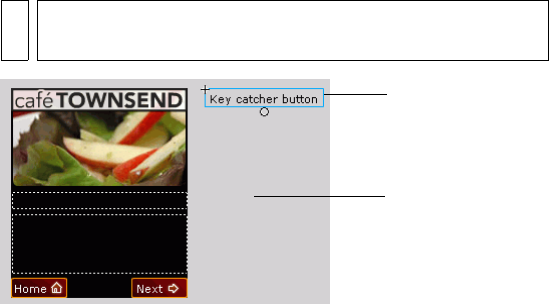 7. From the Library, drag the Key Catcher button symbol and place it in