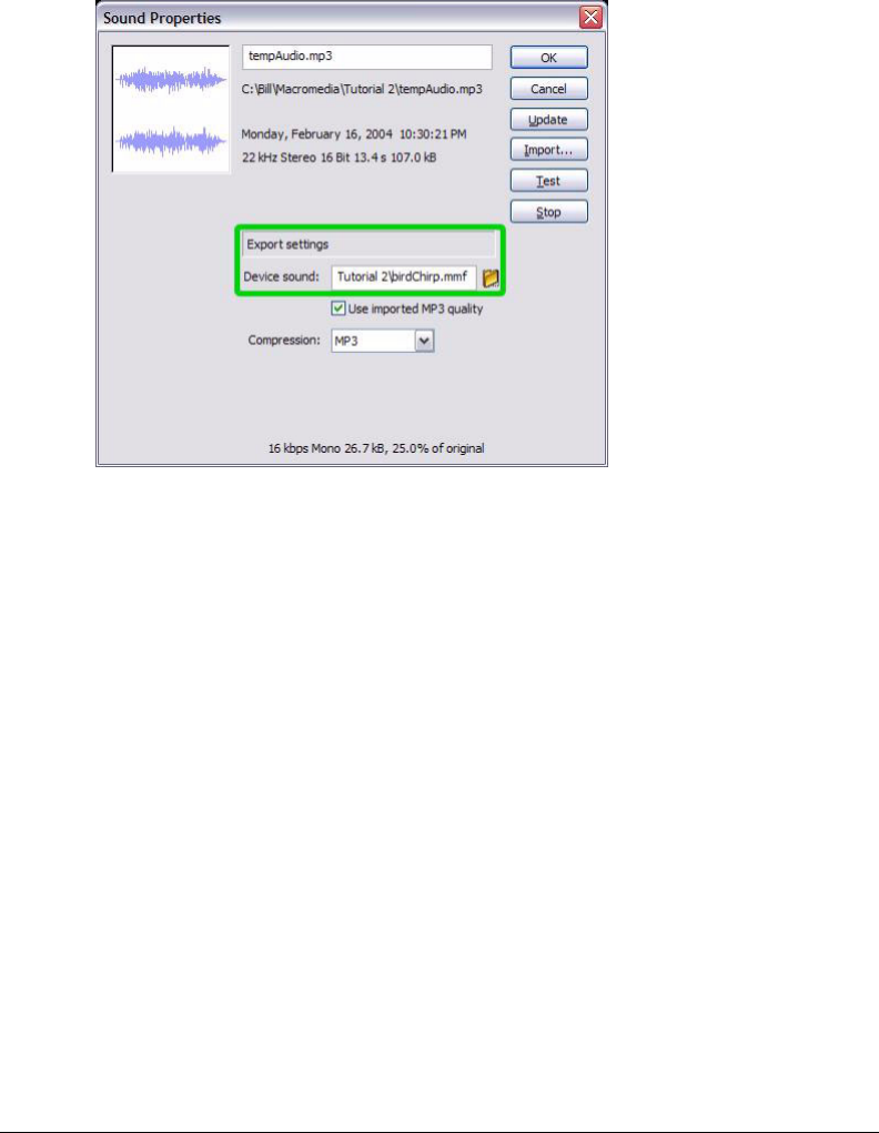 ■ In the Device sound text box, use the file browser to find and select birdChirp.mmf.