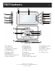 TRX7 Hardware. 1 6 2 17 8 18 9 19 10 20 11 3 4 5 6 7 21 12 13 14 13 16 15 1. Microphone 2. Touchscreen 3. Lanyard attach point 4. POWER button 5. Volume buttons 6. MUTE button 7. RESET button (unused) 8. Camera button* 9. BACK button 10. HOME button 11. MENU button 12. Cradle screws 13. Speakers 14. Cradle connections 15. Mount Plate 16. Mini-USB Power port** *available on select models. **use caution when opening to avoid damaging covers. ***inactive on TRX7. 17. Headphone jack** 18.
