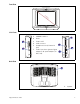 Front View 3.5 ”D isp lay Side Views A A SD/MMC card slot B Reset C Power on/off D USB connector E Headphone Jack (3.5mm mini jack) B F Power input from cigarette lighter adapter or AC power adapter (+5 VDC / 2A).
