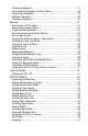 SETUP Menu INITIALIZE .... COORD SYSTEM .. ELEV MODE ..... TIME FORMAT ... VELOCITY AVG .. SPEED UNITS ... DIST UNITS .... ELEV UNITS .... NORTH REF ..... MAP DATUM ..... NMEA .......... BAUD RATE ..... WPT SORT ...... LFIX INTERVAL . PLOT SETUP .... SAMPLING ...... POWER LOCK .... LIGHT INTEN ... CONTRAST ...... Waypoint Popup Menu pg. 42 pg. 43 pg. 43 pg. 44 pg. 44 pg. 44 pg. 45 pg. 45 pg. 45 pg. 45 pg. 45 pg. 46 pg. 46 pg. 46 pg. 46 pg. 47 pg. 47 pg. 48 pg. 48 EDIT .......... WPT PROJEC .... SUNRISE ..