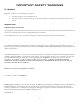 IMPORTANT SAFETY WARNINGS IC statement Operation is subject to the following two conditions: 1. 2. This device may not cause interference and This device must accept any interference, including interference that may cause undesired operation of the device. IMPORTANT NOTE: IC Radiation Exposure Statement: This equipment complies with IC radiation exposure limits set forth for an uncontrolled environment. End users must follow the specific operating instructions for satisfying RF exposure compliance.