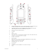 D O A L B M C F I N K J G H E Fundamentals A Backlight / Flashlight button. Press to step though 3 levels of backlight intensity or off. Press and hold for 2-3 seconds to turn the flashlight on or off. B Hold Switch. Slide up to place the Magellan Triton in hold mode. During hold mode, the keys will not function, preventing accidental use. C Connector for optional external antenna D Flashlight E Stylus F Zoom out button G Page / Goto. Press to step through the navigation screens.
