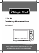 SPECIFICATIONS 120V AC, 60Hz SINGLE PHASE WITH GROUNDING POWER SUPPLY INPUT POWER MICROWAVE 1500 W ENERGY OUTPUT 1000 W FREQUENCY 2,450MHz OUTSIDE DIMENSIONS (W CAVITY DIMENSIONS (W H H D) 20.3 x 12.0 x 14.8 in. D) 14.0 x 9.4 x 14.1 in. CAVITY VOLUME 1.1 cu.ft NET WEIGHT APPROX. 29.5 lbs. TIMER 59 min. 99 sec. POWER SELECTIONS 10 Levels * Specifications are subject to change without notice. 14.8 12 20.