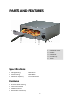 ASSEMBLY Crumb Tray 1. Remove the crumb tray from the Pizza Oven. 2. Using one small screw and one black knob enclosed in the parts bag, hold the black knob to the outside of the crumb tray at the center hole and push small screw and tighten. 3. Slide completed crumb tray assembly back into its original position in the Pizza Oven. Handle Assembly 1. Remove food rack cover and food rack from the Pizza Oven. 2.
