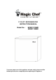 NAMES OF THE PARTS MODEL NO.: MCBR170WMD / MCBR170BMD WARNING : Never touch the interior of the Freezer Chamber or frozen foods in the compartment with wet hands as this could result in frost bite. SPECIFICATIONS – Model # MCBR170WMD/BMD Product Description Magic Chef Refrigerator Model No. MCBR170W MD/ BMD Capacity 1.7 Cu. Ft. Unit Dimensions ( inches ) Width Height Depth 18.6” 19.4” 17.