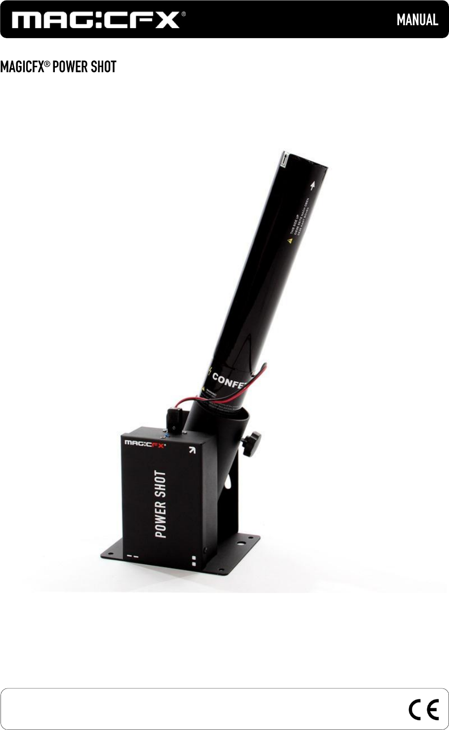 User documentation MAGICFX® Power Shot 1. CONGRATULATIONS! You have bought a great new product from MAGICFX®. MAGIC FX is a Dutch manufacturer of professional special effects machines and equipment. We have been experts in special effects since our establishment in 1995. All our products are made under the brand name MAGICFX® which by now has acquired a great reputation on account of its quality and reliability. All products are made in accordance with the European Machinery Directive.