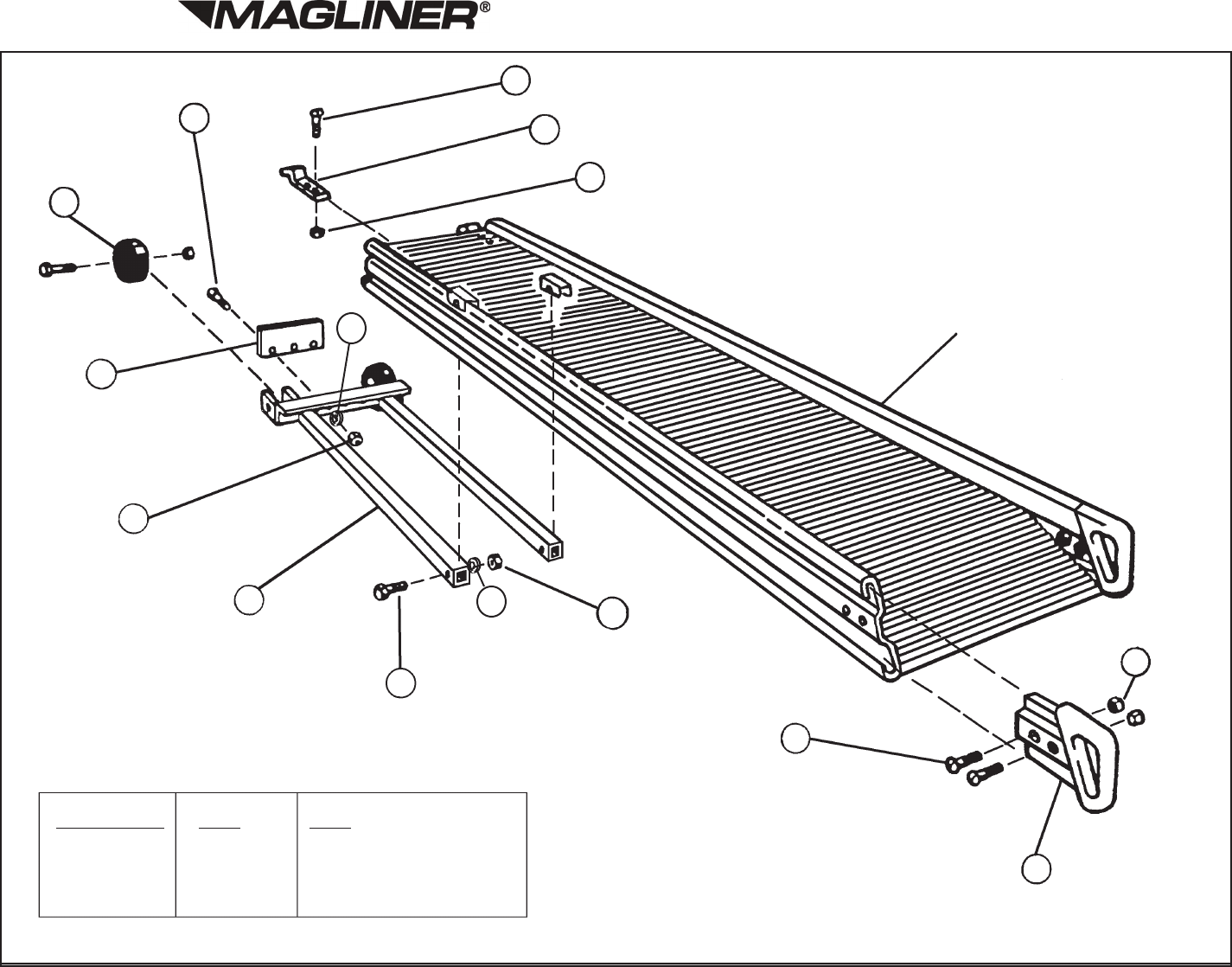Slider® Ramp Replacement Parts List (Ramp & Carriage Assembly)