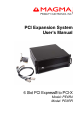 M A G M A Chapter 1 Introduction General Specifications The Magma 6 Slot PCI Express® to PCI-X Expansion System (Model PE6R4) is a general-purpose PCI bus expansion chassis. The expansion chassis is fully compliant with the PCI Local Bus Specification. Because PCI-X is backward compatible with PCI, both card types can be used with PE6R4. Therefore, to keep things simple, the terms PCI and PCI-X will be used interchangeably throughout this manual.
