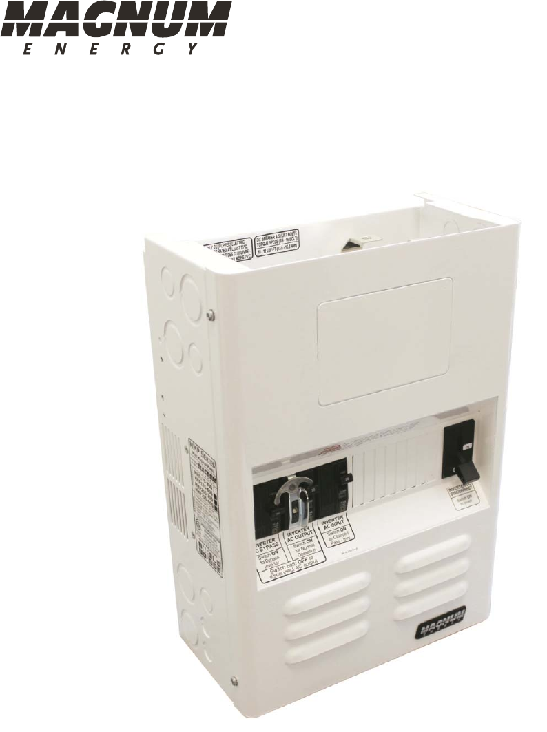 Installation GENERATOR POWER 120/240VAC OUTPUT UTILITY POWER 120/240VAC OUTPUT ME-AGS-N Auto Gen Start Controller (Magnum Option) PV PANELS Flux Capacit AC TRANSFER SWITCH r or Generato Magnum Inverter (Attaches on top for a seamless look) PV CHARGE CONTROLLER MAIN PANEL ME-BMK-NS Battery Monitor (Magnum Option, Installs inside) ON ON OFF ON OFF ON OFF ON OFF ON ON OFF OFF ON OFF ON OFF ON OFF ON OFF ON OFF OFF ON OFF MMP ENCLOSURE AC power to inverter SUB-PANEL ON ON ON