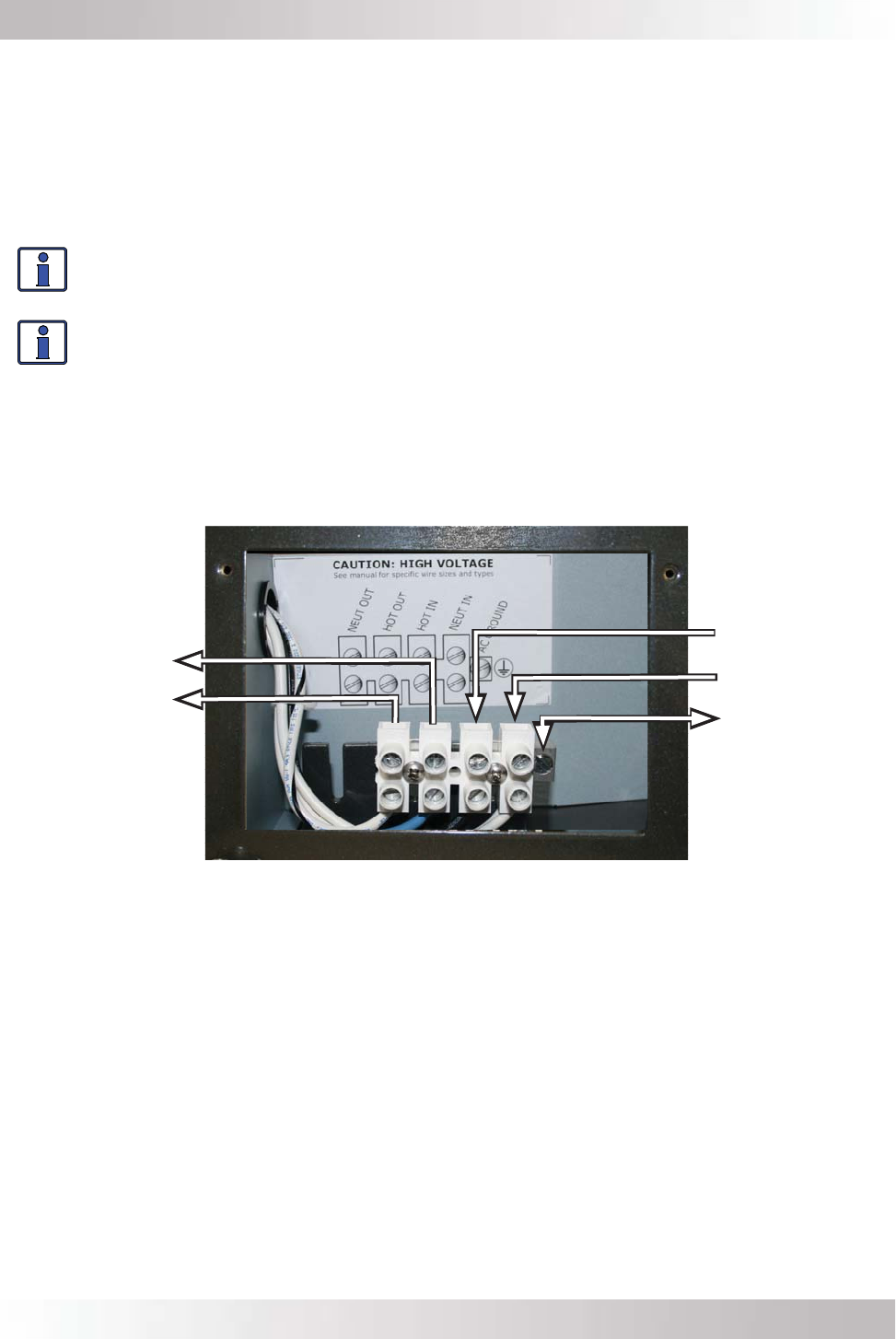 Each connection on the AC terminal block is rated to accept one #14 to #6 AWG (2.1 to 13.3 mm