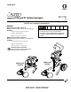 Operation 3A1775C Magnum X5 and X7 Airless Sprayers EN - For Portable Spray Applications of Architectural Paints and Coatings - Not for use in explosive atmospheres - Models: Magnum X5 (16J750) - Series A Maximum Working Pressure: 207 bar, 21 MPa (3000 PSI) Includes: •0.91 lpm (0.24 gpm) stand-mount sprayer •SG2 gun - Manual 312830 •0.635 cm (1/4 in) x 7.5 m (25 ft) hose • Use water-based or mineral spirit-type materials only. Do not use flammable materials.