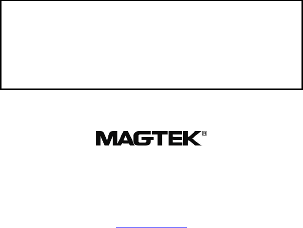 Audio Reader PROGRAMMING REFERENCE MANUAL PART NUMBER 99875582-1 SEPTEMBER 2012 Confidential This document contains the proprietary information of MagTek. Its receipt or possession does not convey any rights to reproduce or disclose its contents or to manufacture, use or sell anything it may describe. Reproduction, disclosure or use without specific written authorization of MagTek is strictly forbidden.