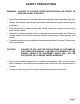 SAFETY PRECAUTIONS WARNING: FAILURE TO FOLLOW THESE PRECAUTIONS CAN RESULT IN SERIOUS INJURY OR DEATH. C Read and understand the Operation Manual completely before operating this unit. C Always wear proper eye and skin protection when operating and maintaining this equipment. C Take precautions to keep clothing, hair, hands, hoses, etc. away from all moving parts on the vehicle. C Automotive cooling systems can be under pressure and extremely hot.