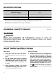 SPECIFICATIONS Model 3708FC Collet chuck capacity 1/4” No load speed (RPM) 26,000/min. Overall length 308 mm (12-1/8”) Net weight 1.3 kg (2.9 lbs) • Manufacturer reserves the right to change specifications without notice. • Specifications may differ from country to country. GENERAL SAFETY RULES USA002-2 (For All Tools) WARNING: Read and understand all instructions. Failure to follow all instructions listed below, may result in electric shock, fire and/or serious personal injury.