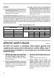 . NEVER hold piece being cut in your hands or across your leg. It is important to support the work properly to minimize body exposure, wheel binding, or loss of control. 6. Hold tool by insulated gripping surfaces when performing an operation where the cutting tool may contact hidden wiring or its own cord. Contact with a “live” wire will also make exposed metal parts of the tool “live” and shock the operator. 7. When ripping always use a rip fence or straight edge guide.