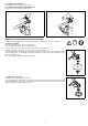 • • • • • Resting Transport Refuelling Maintenance Tool Replacement Refueling - Always stop the engine during refueling, keep away from open flames and do not smoke. - Always wear protective gloves during refueling. Change and clean protective clothing at regular intervals. - Be careful not to spill either fuel or oil for environmental protection. Clean the Brush Cutter/String Trimmer immediately if fuel is split. - Avoid any fuel contact with your clothing.