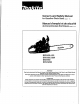 Chain saw operating instructions Wipe off any spilled fuel before starting your saw and check for leakage. For assembly follow the procedure in the appropriate section "MountingGuide Barand Chain"of this manual. MAKITA chain, guide bar and sprocket must match each other (see the appropriate section inthis manual). Check for fuel leakage while refueling and during operation. If fuel or oil leakage is found, do not start or run the engine until leak is fixed and spilled fuel has been wiped away.