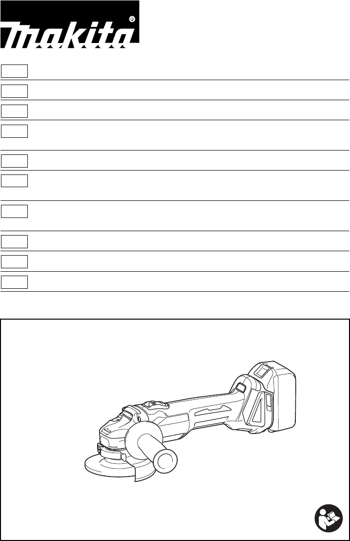 GB Cordless Angle Grinder Instruction manual F Meuleuse d’Angle sans Fil Manuel d’instructions D Akku-Winkelschleifer Betriebsanleitung I Smerigliatrice angolare a batteria Istruzioni per l’uso Haakse accuslijpmachine Gebruiksaanwijzing E Esmeriladora Angular Inalámbrica Manual de instrucciones P Esmerilhadeira Angular a Bateria Manual de instruções DK Ledningsfri vinkelsliber Brugsanvisning GR Φορητός γωνιακός τροχός Οδηγίες χρήσης TR Akülü Avuç Taşlama Makinesi Kullanım kılavuz