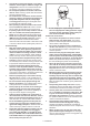 2. 3. 4. 5. 6. 7. Avoid body contact with earthed or grounded surfaces, such as pipes, radiators, ranges and refrigerators. There is an increased risk of electric shock if your body is earthed or grounded. Do not expose power tools to rain or wet conditions. Water entering a power tool will increase the risk of electric shock. Do not abuse the cord. Never use the cord for carrying, pulling or unplugging the power tool. Keep cord away from heat, oil, sharp edges or moving parts.