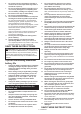 Battery tool use and care 1. Recharge only with the charger specified by the manufacturer. A charger that is suitable for one type of battery pack may create a risk of fire when used with another battery pack. 2. Use power tools only with specifically designated battery packs. Use of any other battery packs may create a risk of injury and fire. 3.
