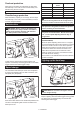 Overheat protection Number Revolutions per minute Blows per minute When the tool or battery is overheated, the tool stops automatically. In this case, let the tool and battery cool before turning the tool on again. 5 980 5,000 4 810 4,130 NOTE: When the tool is overheated, the lamp blinks. 3 640 3,260 2 470 2,400 1 300 1,550 Overdischarge protection When the battery capacity is not enough, the tool stops automatically.