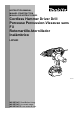 ENGLISH (Original instructions) SPECIFICATIONS Model LXPH03 Drilling into concrete 16 mm (5/8") Drilling into steel 13 mm (1/2") Capacities Drilling into wood 76 mm (3") Fastening wood screw 10 mm x 90 mm (3/8" x 3-1/2") Fastening machine screw 6 mm (1/4") High (2) 0 - 2,000 /min. No load speed (RPM) Blows per minute Low (1) 0 - 400 /min. High (2) 0 - 30,000 /min. Low (1) 0 - 6,000 /min. Overall length 225 mm (8-7/8") Net weight 2.3 kg (5.1 lbs) Rated voltage D.C.