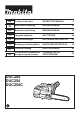 TROUBLESHOOTING Before asking for repairs, conduct your own inspection first. If you find a problem that is not explained in the manual, do not attempt to dismantle the tool. Instead, ask Makita Authorized Service Centers, always using Makita replacement parts for repairs. Malfunction status The chain saw does not start. Cause Action Battery cartridge is not installed. Install a charged battery cartridge. Battery problem (low voltage). Recharge the battery cartridges.