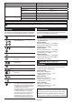 Såpgkedjetyp 25AP Antal drivlänkar Svärd 60 Svärdlängd 250 mm Såglängd 250 mm Vinkel 1/4″ Mätare 1,3 mm Typ Kedjehjul Kurvstång Antal tänder 9 Vinkel 1/4″ OBSERVERA: Vid användning av sågkedja 25AP, använd kedjehjul 9 (extra tillbehör). VARNING: Använd en lämplig kombination av svärd och sågkedje. I annat fall kan personskada uppstå. Symboler Avsedd användning Följande visar symbolerna som används för utrustningen. Se till att du förstår innebörden innan du använder borrmaskinen.