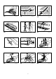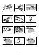 SVENSKA Förklaring till översiktsbilderna 1-1. Avtryckare B 1-2. Avtryckare A 1-3. Avtryckare C 5-1. Säkerhetskrok 5-2. Maskinens kabel 5-3. Förlängningssladd 6-1. Hållare 6-2. Kabel 7-1. Hållare 7-2. Armkrok för kabel 11-1. Trimningsriktning 11-2. Luta bladen 11-3. Häcksida som ska trimmas 16-1. Tryck 16-2. Flisuppsamlare 16-3. Mutter 16-4. Skärblad 17-1. Mutter 17-2. Grenfångare 18-1. Krokar 18-2. Passa in krokarna i spåret 18-3. Spår 19-1. Tryck krokarna på båda sidor 19-2. Lås upp krokarna 20-1.