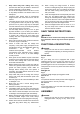 4. 5. 6. 7. 8. 9. 10. 11. 12. 13. 14. 15. 16. 17. 18. 19. 20. Keep cable away from cutting area. During operation the cable may be hidden in shrubs and can be accidentally cut by the blade. Do not use the hedge trimmer in the rain or in wet or very damp conditions. The electric motor is not waterproof. First-time users should have an experienced hedge trimmer user show them how to use the trimmer. The hedge trimmer must not be used by children or young persons under 18 years of age.