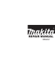4-2 DC motor 4-2-1 Disassembling Fig. 4-2-1-1 Fig. 4-2-1-2 [1] Remove Blade 430. [2] Pull Lock lever. [3] Turn Battery cover complete. [4] Remove Battery cover complete by releasing Battery cover complete from the hinges. Battery cover complete Hinge Battery cover complete Lock lever Fig. 4-2-1-3 Fig. 4-2-1-4 [5] Loosen two 5x25 Tapping screws, and remove Grip A. [6] Loosen seven 4x18 Tapping screws. Cowling 4x18 Tapping screw (7 pcs.) Terminal housing set Grip A 5x25 Tapping screw (2 pcs.