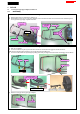 6 Wiring diagram Fig. 6-1 Set the sheath of Power supply cord inside A as shown below. Route the lead wires of Controller as shown in the figure. Face the longer part of lead wires of Power supply cord to Deck. Strain relief Strain relief Power supply cord A 3mm 10mm Do not put lead wires on the rib E and Lead unit. Route the lead wires of Power supply cord through Line filters C (if used), and set the Line filters in the position shown below.