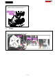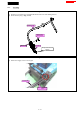 4-1-2 Assembling Fig. 4-1-2-1 [1] Mount Lever to Switch lever, and tighten M4x20 Pan head screw while holding Hex nut. [2] Mount Tension spring 9. (Fig. 4-1-1-5) Switch lever M4x20 Pan head screw Hex nut Lever The tip of Lever faces upward. Fig. 4-1-2-2 [3] Route Power supply cord over Lower pipe.