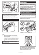 1 2 1 2 5 3 4 3 1. Inner flange 2. Rotational direction arrow 3. Outer flange 4. Bolt 5. Mower blade 1. Hook 2. Groove 3. Grass basket To install the mower blade, take the removal procedure in reverse. WARNING: Install the blade carefully. It has a top/bottom facing. Place the blade so that the rotational direction arrow faces outward. OPERATION WARNING: Tighten the bolt clockwise firmly to secure the blade.