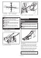 3. Attach the holders to the handle. Position the power supply cord as shown in the figure. 1 2 1 1. Pivot point 2. Battery cover locking lever Installing the handle 1. Holder Removing or installing the mower blade NOTICE: When installing handles, position the cords so that they are not caught by anything between the handles. If the cord is damaged, the mower switch may not work. WARNING: Always remove the lock key and battery cartridge when removing or installing the blade.