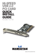 introduction Thank you for purchasing the MANHATTAN ® Hi-Speed USB 2.0 PCI Card, Model 167741. The easy-to-follow instructions in this guide help make installation of the card quick and simple, so you’ll also soon be enjoying the benefits of these features: • Adds 2 external Hi-Speed USB 2.