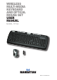introduction Thank you for purchasing the MANHATTAN ® Wireless Multi-Media Keyboard and Optical Mouse Set, Model 177122. Offering multi-media capability without a cord, this convenient combo features multi-media and Internet hotkeys that give quick access to 17 essential browser, Windows and media functions. The keyboard provides an ergonomic design, a generous work area and an adjustable tilt mechanism for comfortable typing positions without compromising valuable desktop workspace.