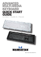 specifications General • Multi-media keys (Prev Track, Next Track, Play/Pause, Volume Up, Volume Down and Mute) • Internet keys (Home, Email, Search and Favorites) • Sleep and Shutdown management keys • 10,000,000-keystroke switch life • Compatible with Windows Me/2000/XP/Vista • Number, Scroll and Caps Lock LED indicators Electrical (working levels) • Voltage: 5 V; tolerance, +/- 0.25 V Physical • Key cap force: 55 +/- 20 g; pulling force, 1.