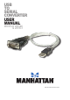 Thank you for purchasing this MANHATTAN® USB to Serial Converter, Models 205146 and 205153. Modern computers are often not equipped with RS232 ports, making the use of legacy peripherals and communication devices more difficult. The MANHATTAN USB to Serial Converter, with its serial RS232 port, easily expands a single USB 1.1 port to connect and support serial modems, barcode scanners, digital cameras, card readers and other devices.