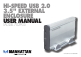 Congratulations on purchasing the MANHATTAN Hi-Speed USB 2.0 3.5" External Enclosure, Model 702935. This device will let you quickly and easily transfer, share and archive data, and expand storage capacities for desktop and notebook PCs. Among the external enclosure’s main features: • Supports Hi-Speed USB 2.0 data transfer rates of up to 480 Mbps • Lightweight, compact design increases portability • Sturdy aluminum case protects drive and facilitates cooling • Fits standard 3.