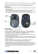 Mysz optyczna bezprzewodowa Performance • Instrukcja Użytkownika Polski Dziękujemy za zakup Myszki optycznej bezprzewodowej Performance MANHATTAN®, model 177795. Pełną specyfikację produktu znajdziecie Państwo na stronie www.manhattan-products.com. Instalacja 1. Ze spodniej częściej myszy wyjmij mikro odbiornik i umieść go w wolnym porcie USB komputera. 2. Odsuń pokrywę kieszeni na baterie, włóż do środka dołączone baterie typu AA i zasuń pokrywę.