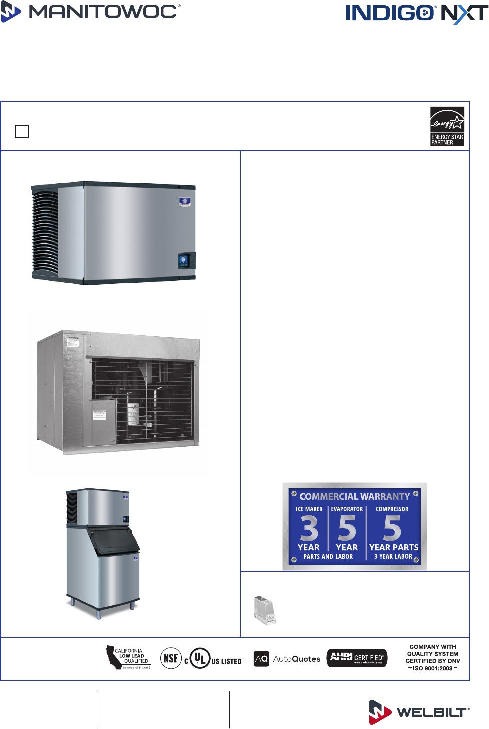 • Space-Saving Design – Up to 634 lbs. (288 kgs) daily ice production