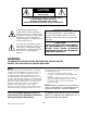 CAUTION RISK OF ELECTRIC SHOCK DO NOT OPEN CAUTION: TO REDUCE THE RISK OF ELECTRIC SHOCK, DO NOT REMOVE COVER (OR BACK) NO USER-SERVICEABLE PARTS INSIDE REFER SERVICING TO QUALIFIED SERVICE PERSONNEL The lightning flash with arrowhead symbol, within an equilateral triangle, is intended to alert the user to the presence of uninsulated "dangerous voltage" within the product's enclosure that may be of sufficient magnitude to constitute a risk of electric shock to persons.