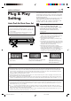 EN INITIAL SETTINGS Plug & Play Setting Auto Clock Set/Auto Tuner Set ATTENTION ● If you use a cable box, Plug & Play will not function; set the clock and tuner channels separately. ( pg.10 – 14) ● It takes several minutes for the VCR to complete the Plug & Play setting. ● Do not press any buttons on the front panel or on the Remote while Plug & Play is in progress. IN F-1 + During Initial Auto Clock Set “Auto” blinks.